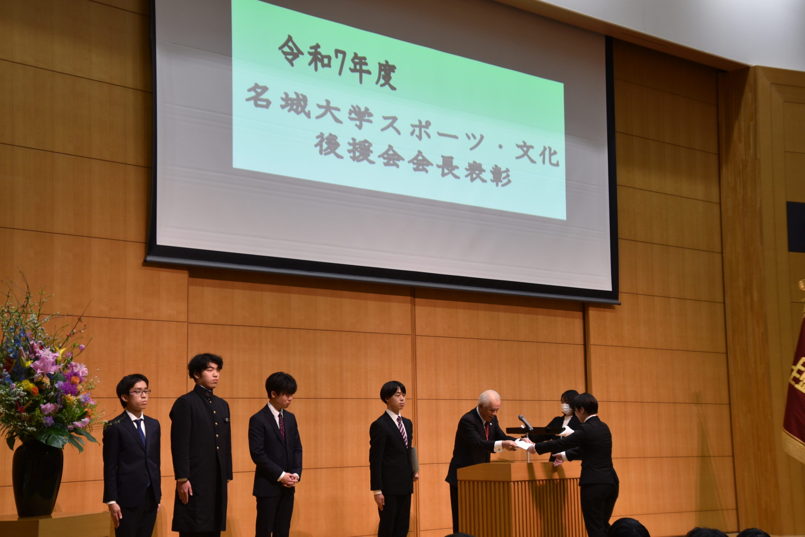 令和7年度の「名城大学スポーツ・文化後援会 会長表彰」の表彰式が、3月12日(木)に天白キャンパス共通講義棟北名城ホールにて、学長表彰と併せて執り行われました。